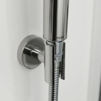 De Tiger Douchekophouder Boston Chroom is uitgevoerd in glanzend RVS, en is ook verkrijgbaar in geborsteld RVS. Er zijn van deze serie diverse douche accessoires verkrijgbaar. Dit product is onderdeel van het Boston totaalconcept, dat verder bestaat uit kranen, badmeubelen, badkamer accessoires en douchecabines, alles in de Boston stijl.