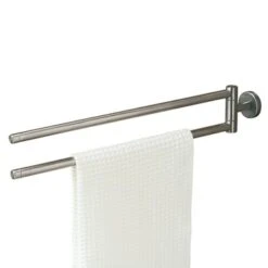 Het Tiger Dubbel Handdoekrek Boston met Draaibare Armen RVS van de accessoire serie Boston is uitgevoerd in geborsteld RVS, en is ook verkrijgbaar in glanzend RVS. Dit product kan uitsluitend worden bevestigd met de meegeleverde schroeven. Er zijn van deze serie diverse sanitair accessoires verkrijgbaar. Dit product maakt deel uit van het Boston totaalconcept, dat verder bestaat uit kranen, badmeubelen, douche accessoires en douchecabines, alles in de Boston stijl.