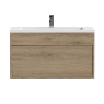 Het Tiger Helsinki badkamermeubel is een simplistisch, modern en greeploos meubel in Scandinavisch design. De wastafelonderkast is voorzien ruime lades waarin alle badkamerspullen overzichtelijk opgeborgen kunnen worden. Voor extra comfort is deze onderkast voorzien van handige ‘push to open’ lades waardoor ze al middels één simpele aanraking openen. De warme houttint geeft een sfeervol karakter aan het meubel. Daarnaast krijgt het meubel, door de voelbare houtnerf, een mooie natuurlijke uitstraling .De strak vomgegeven polybeton wastafel maakt deze set compleet.