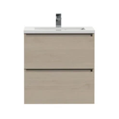 Het greeploze Tiger Karlo badkamermeubel is speciaal ontworpen voor de strakke en moderne badkamer. De wastafelonderkast heeft 2 ruime lades om alle badkamerspullen overzichtelijk in op te bergen. De lades zijn uitgerust met hoogwaardige ‘soft close’ geleiders waardoor ze geruisloos sluiten. De warme houttint geeft een sfeervol karakter aan het meubel. Daarnaast krijgt het meubel, door de voelbare houtnerf, een mooie natuurlijke uitstraling. De strak vomgegeven polybeton wastafel maakt deze set compleet.