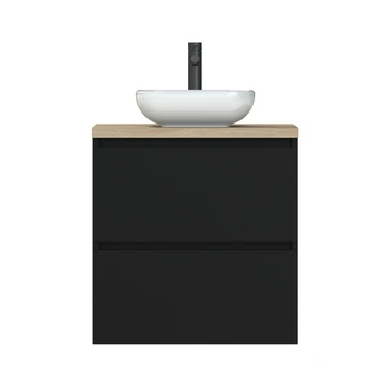 Tiger Karlo Badkamermeubel 60cm Mat Zwart Met Eiken Wasblad En Keramische Waskom