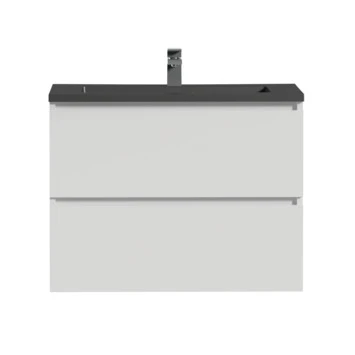 Het greeploze Tiger Karlo badkamermeubel is speciaal ontworpen voor de strakke en moderne badkamer. De wastafelonderkast heeft 2 ruime lades om alle badkamerspullen overzichtelijk in op te bergen. De lades zijn uitgerust met hoogwaardige ‘soft close’ geleiders waardoor ze geruisloos sluiten. Door de mooie heldere witte kleur krijgt het meubel een tijdloze uitstraling. De strakke, mat zwarte polybeton wastafel met immitatie natuursteen look maakt deze set compleet.