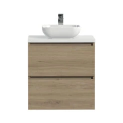 Tiger Karlo Badkamermeubelset 60 Cm Chalet Eik Met Wit Houten Wasblad En Glanzend Witte Keramische Waskom