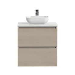 Tiger Karlo Badkamermeubelset 60 Cm Naturel Eik Met Wit Houten Wasblad En Glanzend Witte Keramische Waskom