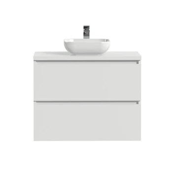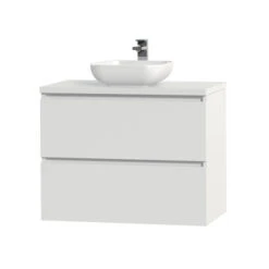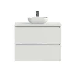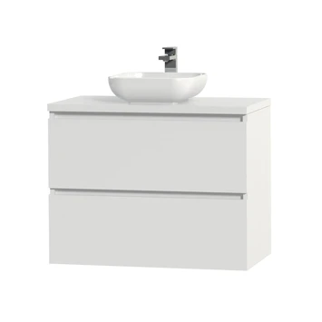 Tiger Karlo Badkamermeubelset 80 Cm Hoogglans Wit Met Wit Houten Wasblad En Glanzend Witte Keramische Waskom