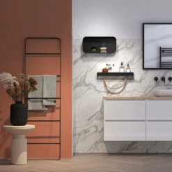 Eenvoudig maar verfijnd. Deze S-line Frame spiegel van Tiger in mat zwart zorgt ervoor dat jij altijd perfect gestyled van huis gaat. Deze spiegel met strakke lijnen van 60×70 cm laat de ruimte groter ogen en is een ware blikvanger in iedere badkamer. Kabels werk je netjes weg en voor meer gemak is de spiegel voorzien van een voorboring voor een optionele Tiger sensorschakelaar voor verlichting. Met dit item ben je helemaal on-trend. Ontdek jouw favoriete stijl. Voor een complete look in minimalistisch design combineer je deze spiegel met andere meubels uit de Tiger collectie.