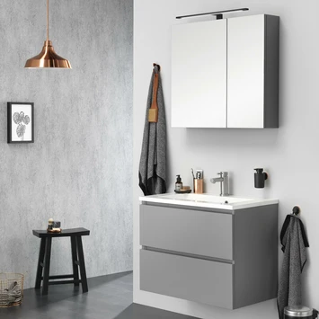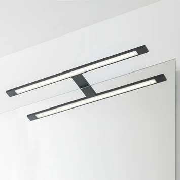 De Tiger Spiegelverlichting Ancis Zwart 60 cm is een strakke designlamp die je badkamer voorziet van luxueus licht. Met zijn mat zwarte kleur past deze spiegellamp helemaal in de industriele badkamer van nu. De Ledlamp met een lichtopbrengst van 780 Lumen voorziet je van het nodige licht bij het scheren of aanbrengen en verwijderen van make-up. De lichtkleur van 4000 Kelvin, die overeenkomt met daglicht, wordt bovendien aangeraden door visagisten. Met de energiezuinige LED-lamp die slechts een verbruik heeft van 13,2 Watt en een levensduur van 20.000 branduren is deze spiegellamp een zeer economische aankoop. De lamp is vocht- en corrosie bestendig en IP44 bestendig tegen spattend water boven de wastafel. Door de geïntegreerde transformator is deze spiegellamp direct aan te sluiten op het lichtnet. Monteerbaar bovenop spiegel of spiegelkast.