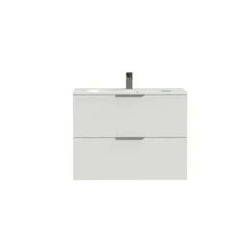 Tiger Studio Badkamermeubel 80 Cm Hoogglans Wit Met Wastafel Polybeton Mat Wit Greep Rvs Plat