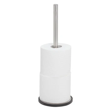 De vrijstaande reserverolhouder uit de Tune serie van Tiger is uitgevoerd in de kleuren geborsteld RVS en mat zwart. Met deze houder kun je drie extra rollen toiletpapier opbergen naast je toilet. De Tune serie bevat een groot aantal aanvullende accessoires voor de badkamer en het toilet.